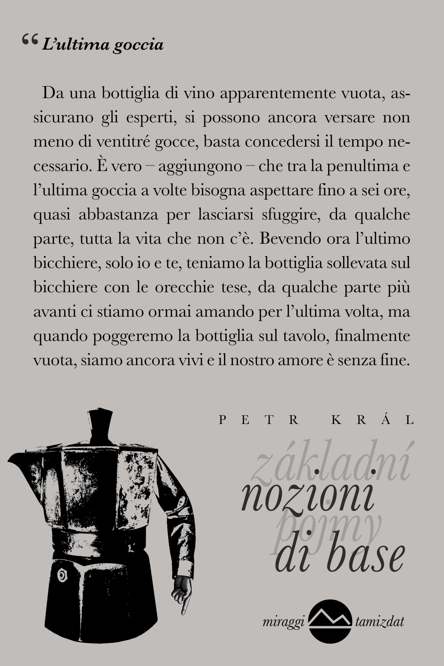 Petr Král è un poeta Ceco, surrealista. Questa raccolta è stata tradotta da Laura Angeloni, dal Ceco, ed è la prima edizione Italiana.