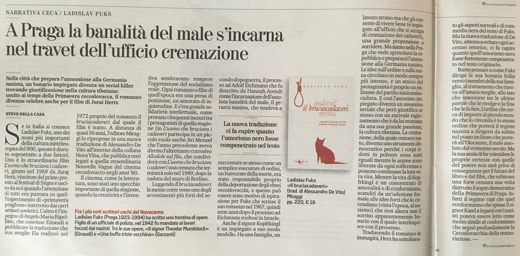 Se in Italia si conosce Ladislav Fuks, uno dei nomi più importanti della cultura mitteleuropea del 900, questo è dovuto soprattutto a due fattori. Uno è lo straordinario film L’uomo che bruciava i cadaveri, girato nel 1969 da Juraj Herz, vincitore del primo premio al festival di Sitges e uscito da noi quando l’attenzione di tutti era puntata su quell’esperimento di «primavera praghese» interrotto dai c…continua