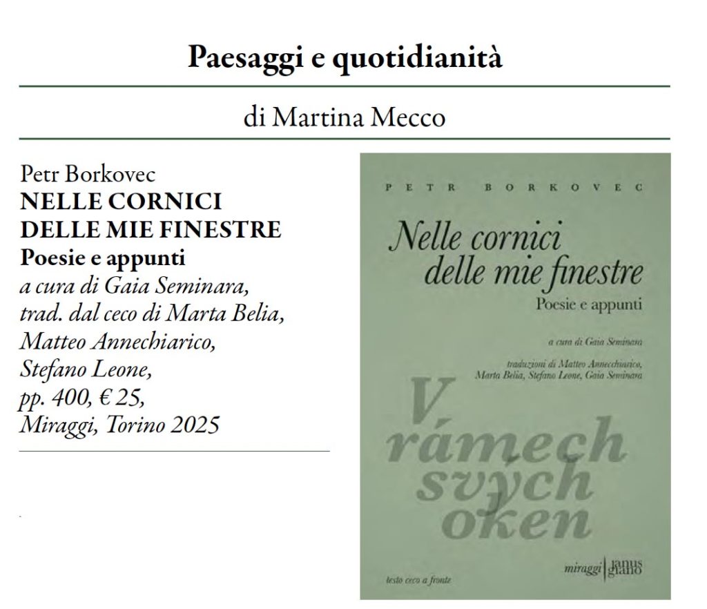 Nelle cornici delle mie finestre. Poesie e appunti, che comprende poesie e brevi prose tratte da diverse raccolte del poeta Petr Borkovec,